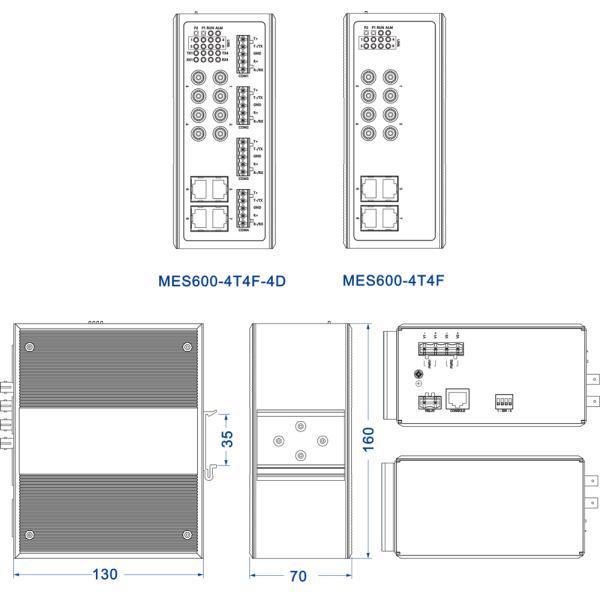 | MES600-4T4F-4D | 4 | 4 | 4 | 12~48VDC dual power supply |